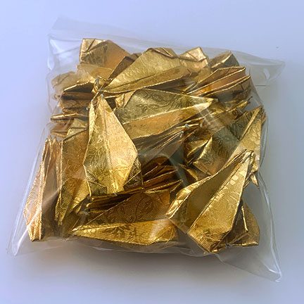 Enhance your next event with these beautiful, handmade gold origami cranes. They’re not just a garnish—they’re a conversation piece, a keepsake, and a little piece of art.