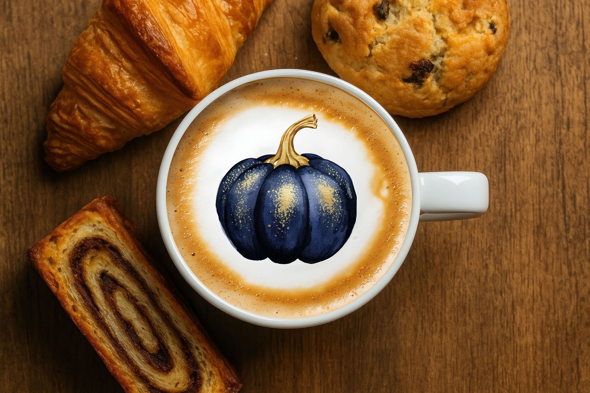 Autumn Pumpkin Drink Toppers – Edible Navy & Gold Watercolor Garnishes (Pack of 25 or Variety Pack)